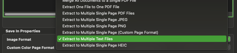 To perform the extraction, for the Image Format, select Extract to Multiple Text Files which would extract the text from each PDF documents or images (TIFF, PNG or JPEG). For PDF, it will first check if there is a text layer and if so, would extract from it. If not, it will begin the OCR process. However for other image formats, text layers are not supported and thus the app would perform OCR on them.